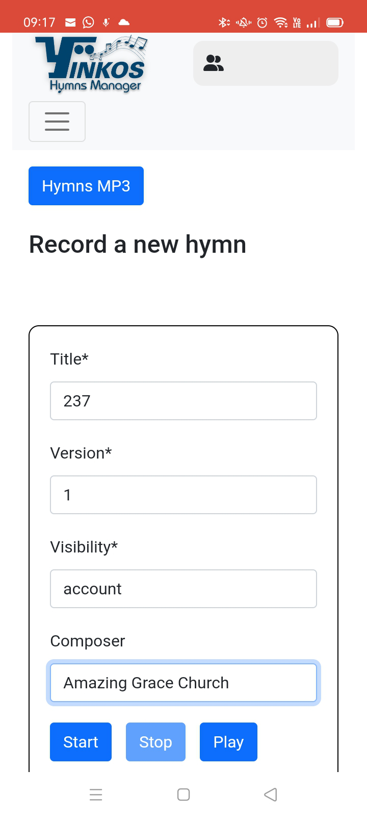 Helping with recording of songs - the app can record right as you sing or play your hymns.